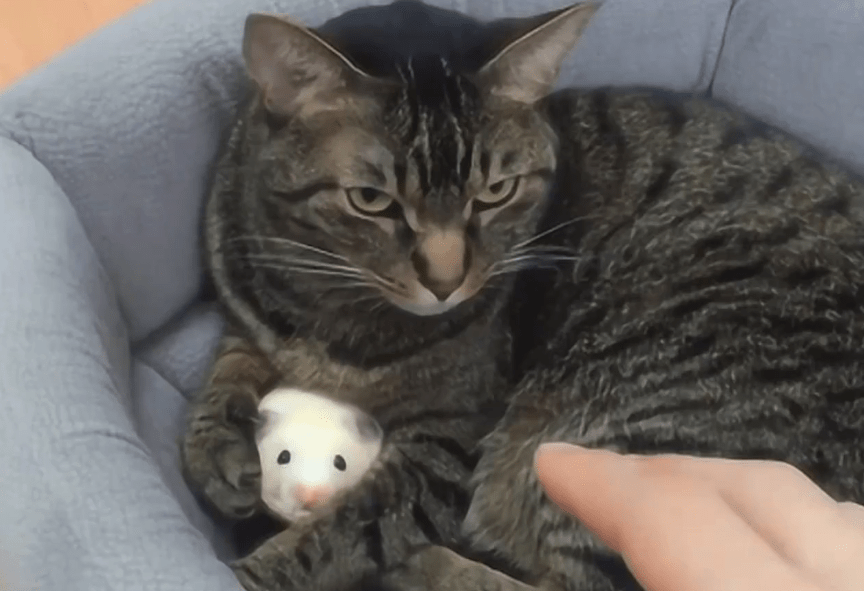 The bottom line of this cat is a hamster. The cat and the mouse are incompatible. Why does the cat love the hamster so much? Originally, the hamster was the owner’s leftover toy. After the cat saw it, it became its exclusive pet. It loved the hamster. When the owner left home, the little hamster accompanies it, and the cat watched it like a child. With a hamster, even sleeping will not be separated.